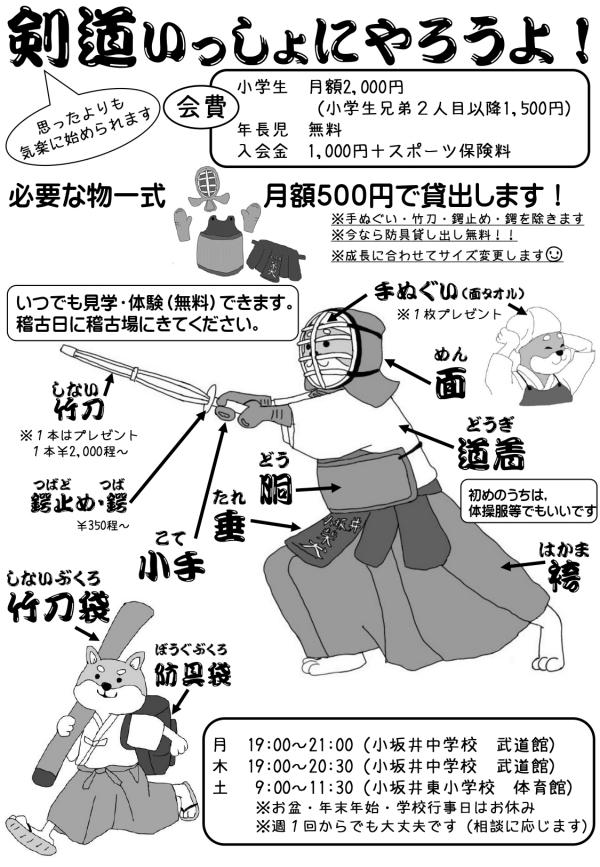 毎週月曜日 19:00〜20:15 小坂井中学校・武道館