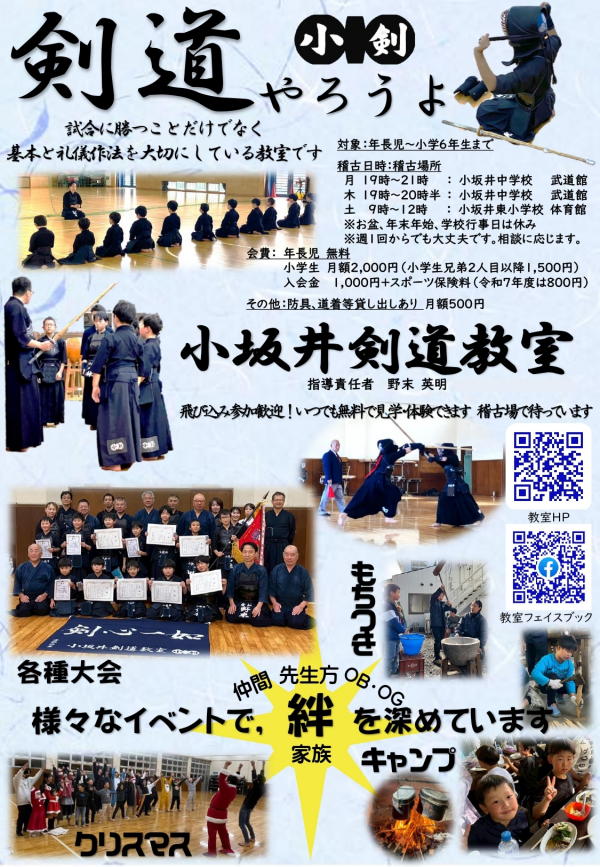 毎週木曜日 19:00〜20:15 小坂井中学校・武道館
