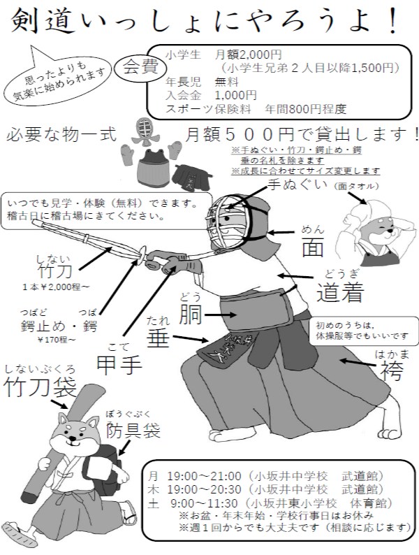 毎週木曜日 19:00〜20:15 小坂井中学校・武道館
